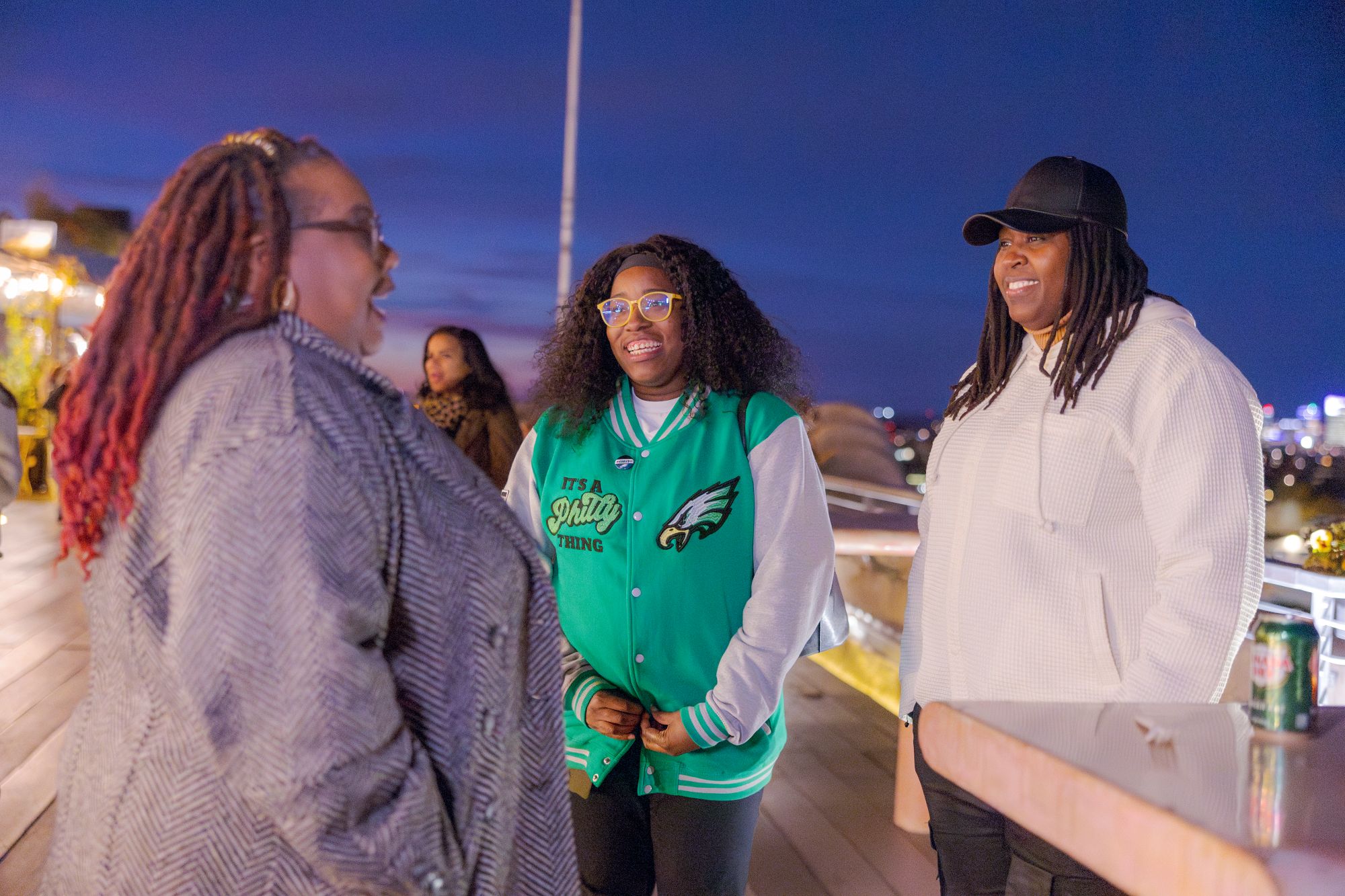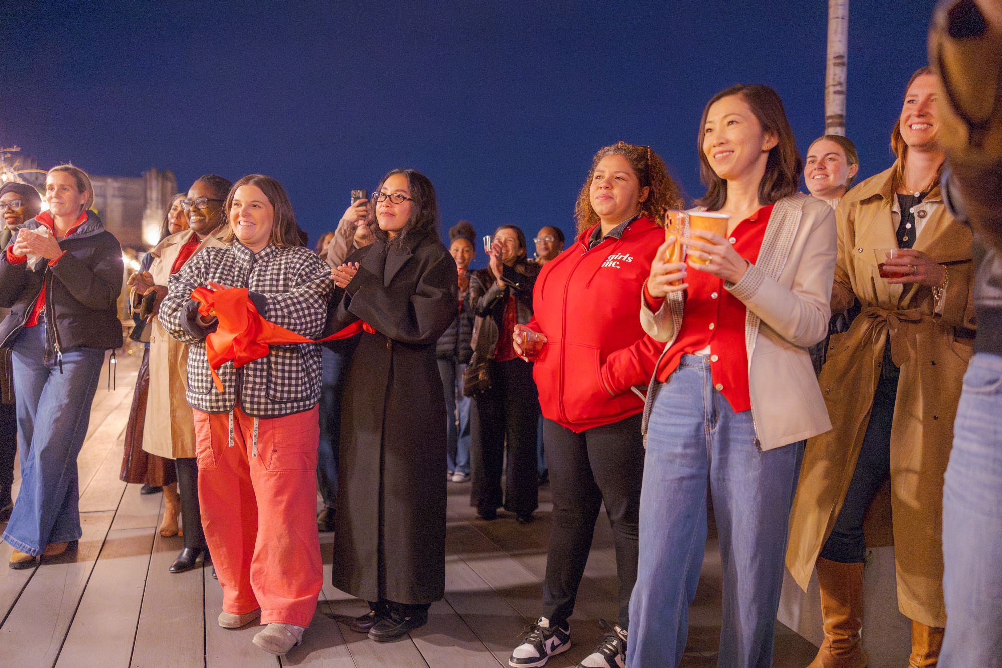 On November 6, 2025, we celebrated something truly special: the grand opening of the Free to Be Me Wellness Center, presented by Girls Inc. and Free People at the Bok Building. The evening unfolded on the building’s beautiful rooftop, where the city skyline glowed in the distance. The air was filled with laughter and conversation as our participants, staff, board members, and community partners mingled beneath the lights, taking in the view and the magnitude of what we’ve built together.